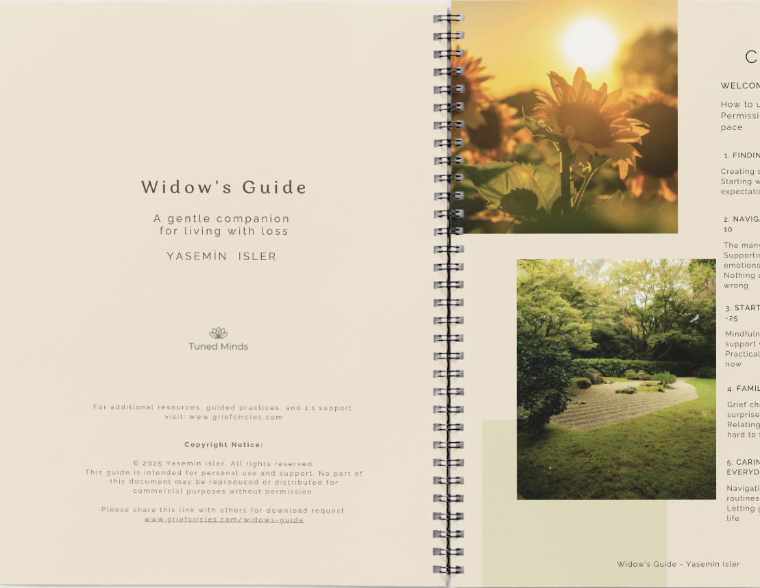 The Widows Guide is available to you whenever you’re ready. Each page and meditation offers a small, steady source of support — helping you navigate grief with greater care and compassion.